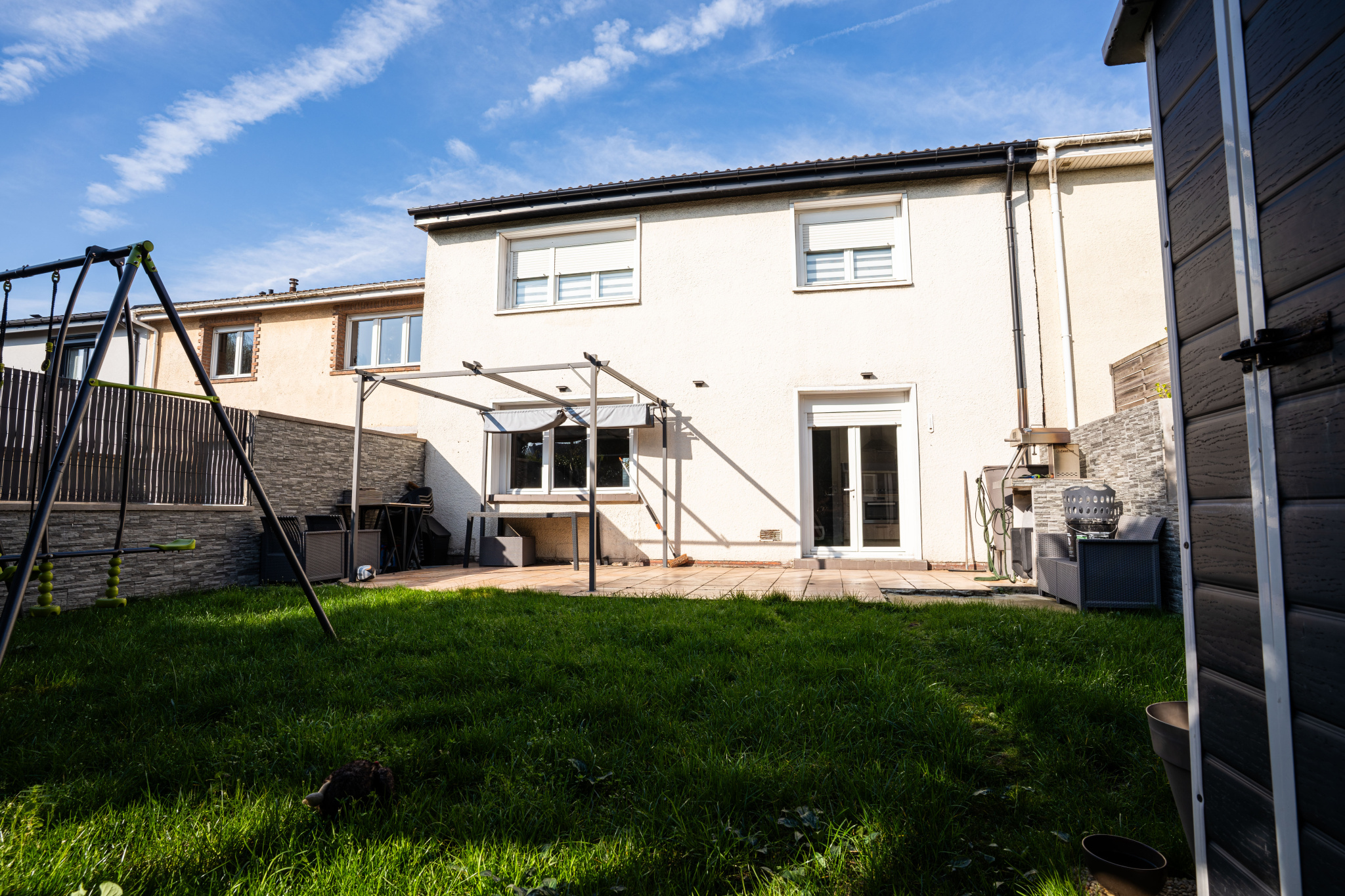 Boréal immobilier vous présente en exclusivité cette maison de lotissement au calme d'une impasse tranquille proche de la passerelle et du parc Jacobsen. Vous entrez dans la belle pièce de vie traversante et lumineuse ouverte sur une cuisine entièrement équipée récente et moderne. Vous profiterez pleinement de la terrasse et du jardin sans vis à vis grace à leur exposition plein sud. La cuisine donne accés au garage entiérement carrelé et avec porte automatique. Celui-ci fait office d'arrière cuisine, espace buanderie, dressing, atelier et local vélos; Vous pouvez y stationner un véhicule si vous le souhaitez; Il y a une place privative devant la maison et le stationnement est très facile dans l'impasse pour vos invités. A l'étage, le palier dessert 3 belles chambres (12, 12.5 et 14 m2) ainsi qu'un dressing et une grande salle de bain (baignoire, douche italienne et nombreux rangements). Pour la partie technique: menuiseries double vitrage, electricité récente, chaudière Frisquet entretenue, poèle à Granulés, dalle béton, maison de lotissement mais sans mitoyenneté directe avec ses voisins, jardin privatif cloturé, maison de 96m2 habitable + 17m2 de garage aménagé. L'avis Boréal: Maison moderne et sans travaux prète a accueillir sa nouvelle famille. Il va falloir faire vite. Bien disponible à la rentrée 2026. Olivier 06 10 52 39 39